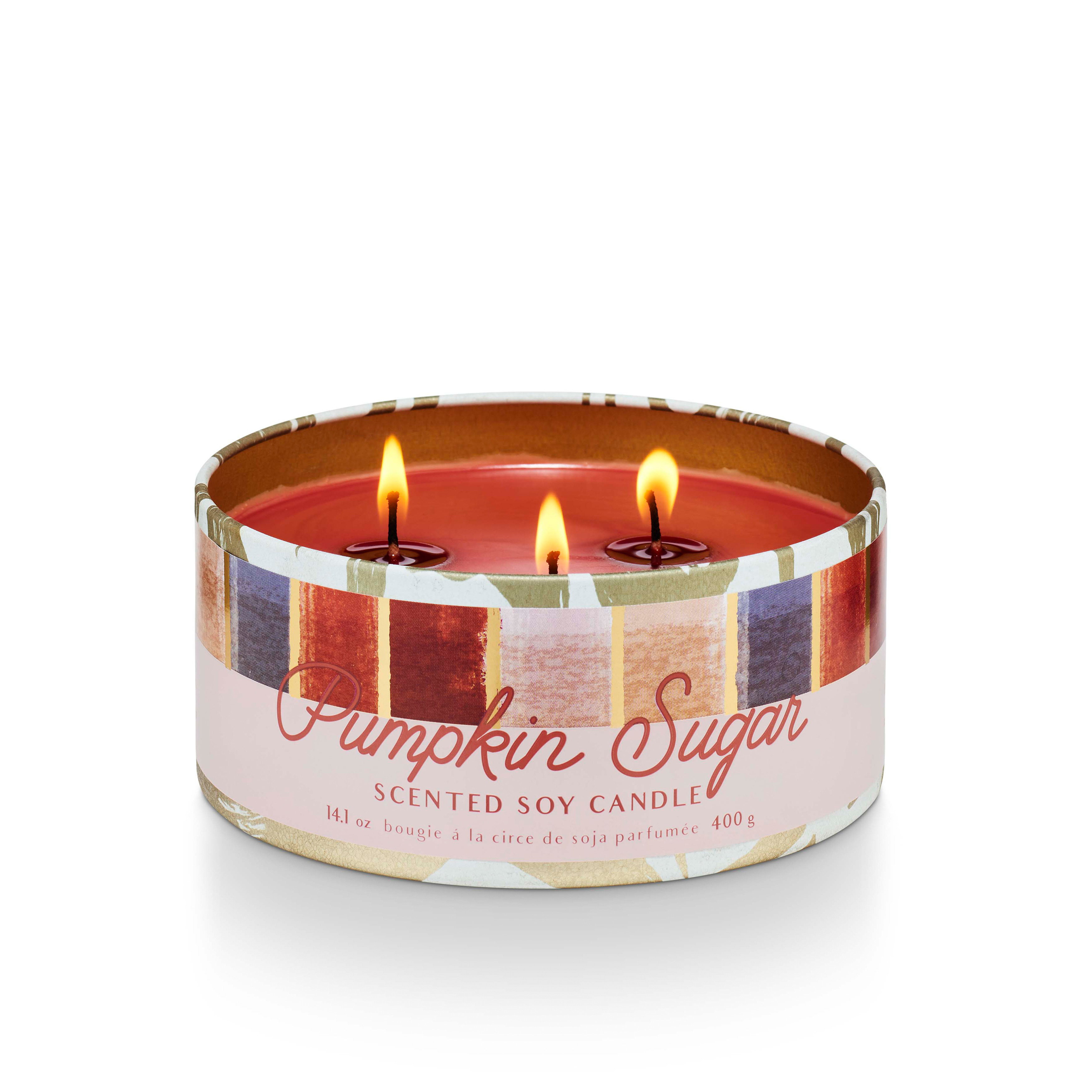 Fragrance Description: Notes of cinnamon, autumn pumpkin, and creamy vanilla. This scented 14.1 oz tin candle with lid makes a great gift. 30 hour burn time.